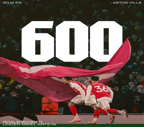 英超第19轮,阿森纳主场对阵维拉,下半场加布里埃尔破门为阿森纳取得领先,据统计,这是阿尔特塔治下阿森纳打入的第600球。